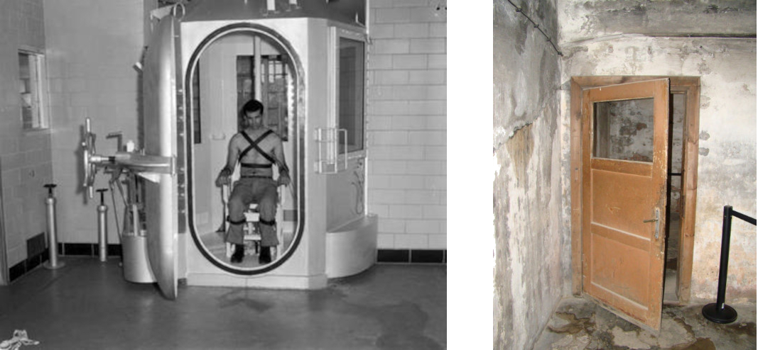 Purposely divisive language in propoganda film German citizens were brought in from Weimar. They had to see 'too', to see what 'they had been fighting for' and 'we had been fighting against'. They came cheefully like sightseers to a 'chamber of horrors', for here indeed were some 'real' horrors. If a prisoner had a 'curiously tattooed skin, it was taken from him'. 'We can only hope he was dead when it was done'. The skin was tanned and made into lamp shades, etcetera. These shrunken heads belonged to two Polish prisoners who escaped and had been recaptured. Some of the visitors did not care for the sight and were 'assisted'. |