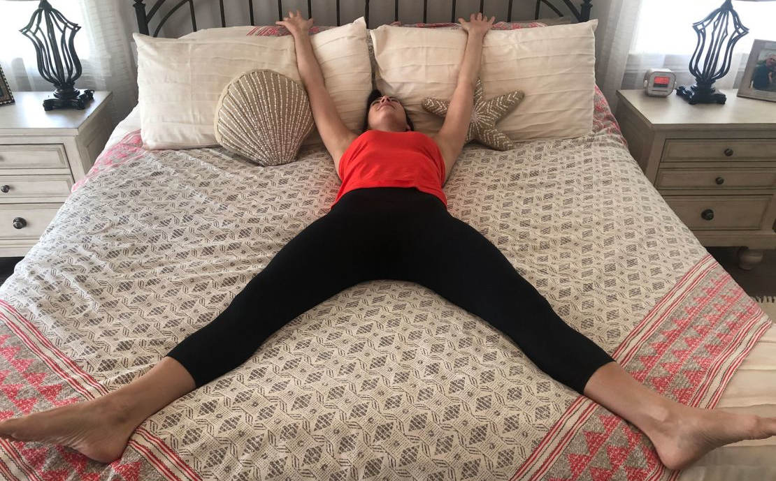 Yoga stretching in bed: offers a gentle way for flexibility and easing muscle stiffness. Stretch by holding positions in bed : Twist and turn star shapes